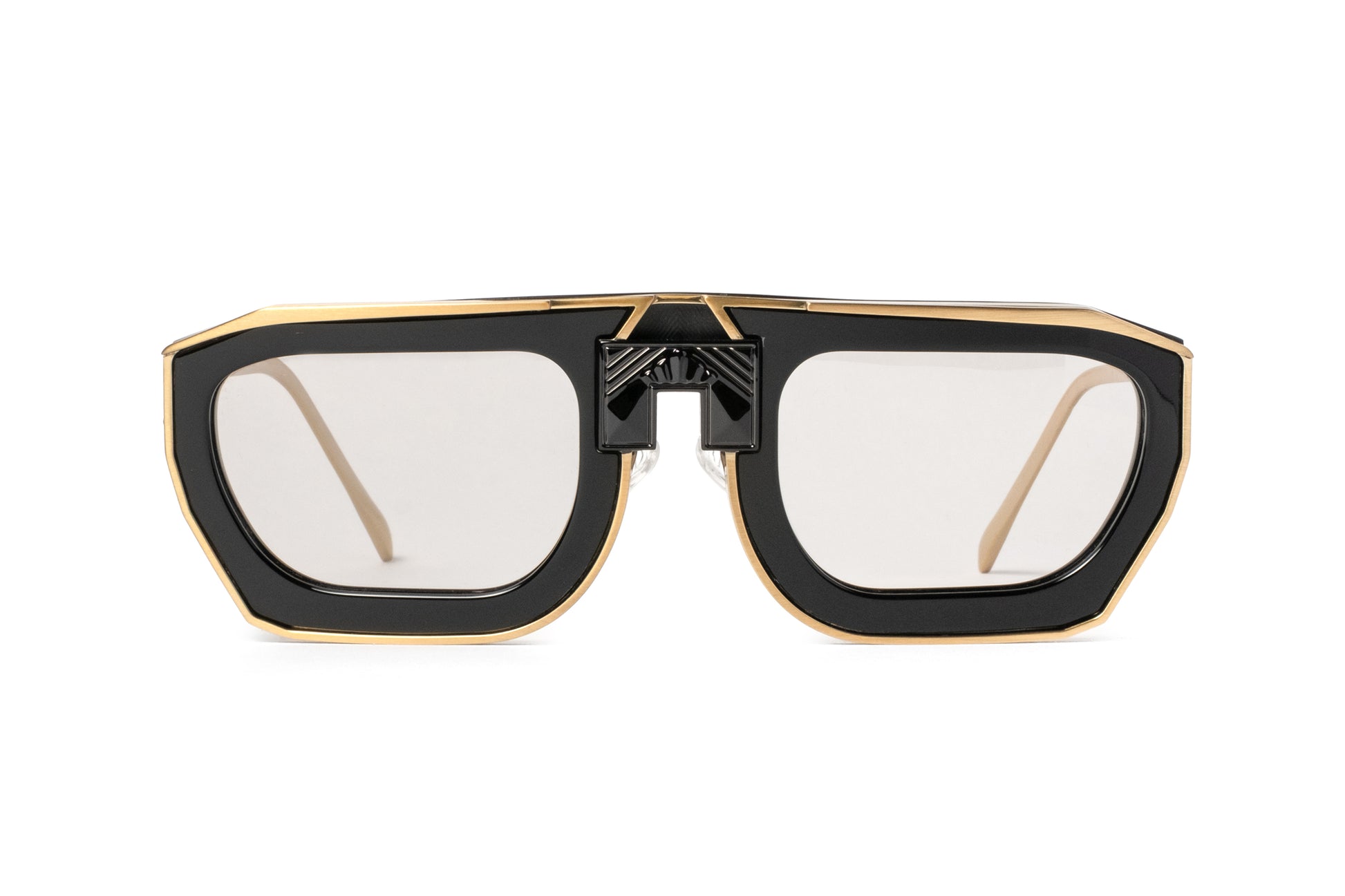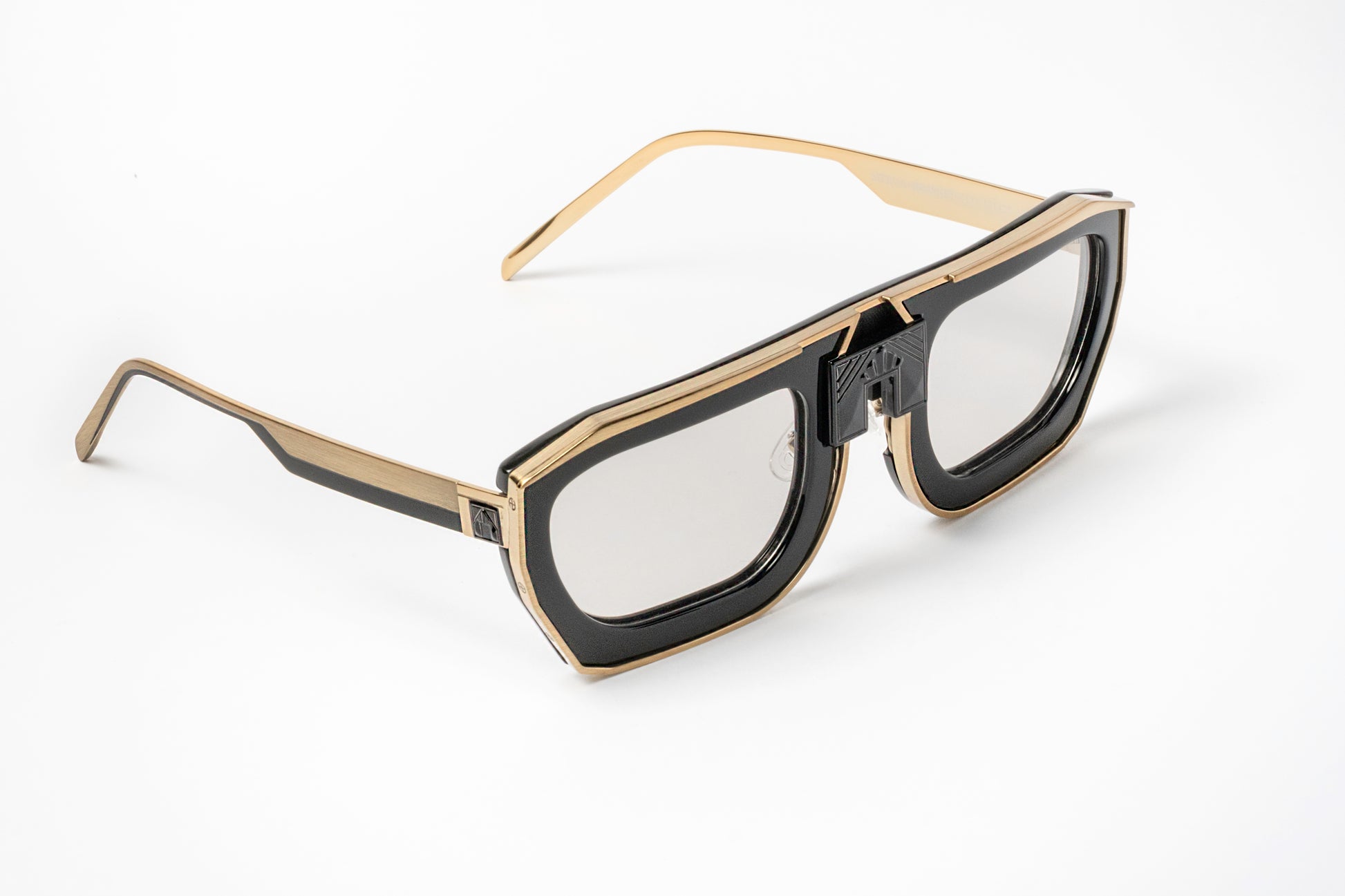 The Matriarca glasses suggest strength in a slightly different way. The bold edges, framed with gold accents, merge minimalist beauty with geometric elegance. The Matriarca frames are the perfect blend of sleek and modern artistry and elegant practicality — offering both functionality and style.